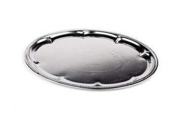 Taca owalna do serwowania z ozdobnym rantem 460×340 mm, chromowana | APS, 00391