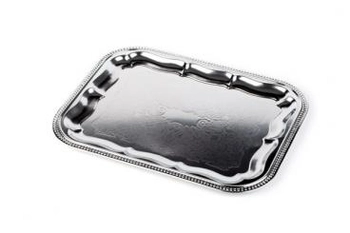 Taca prostokątna do serwowania z ozdobnym rantem 410×310 mm, chromowana | APS, 00392