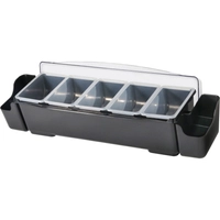 Pojemnik barmański na dodatki do drinków z 5 wkładami z polipropylenu, czarny, 480x150x100 mm | BARUP, 552131