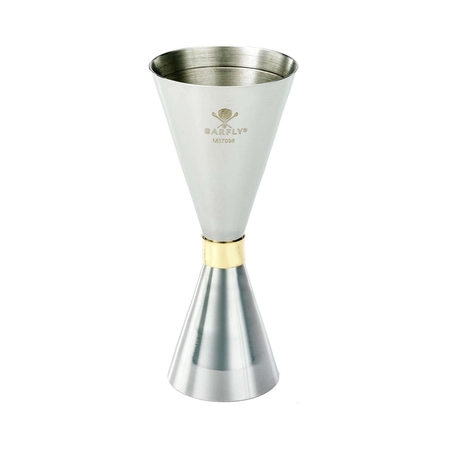 Jigger – miarka barmańska Slim Style, 30/60 ml, ze stali nierdzewnej ze złotą obwódką | BARFLY, M37096