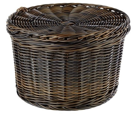 - Stabilny kosz wykonany z polipropylenu imitującego rattan