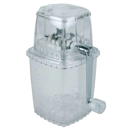 - Wykonana z przeźroczystego tworzywa, ręczna kruszarka do lodu