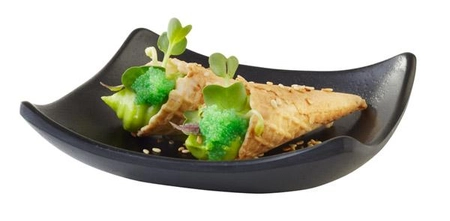 - Miska kwadratowa z serii "Zen" o pojemności 0,06 l, wykonana z trwałej melaminy, przypominającej czarną, japońską kamionkę