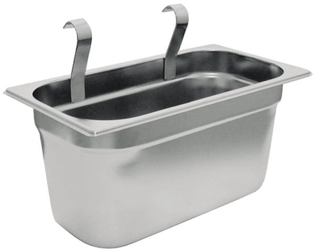 - Pojemnik wykonany ze stali nierdzewnej, ze dwoma uchwytami do zawieszenia na wózku kelnerskim