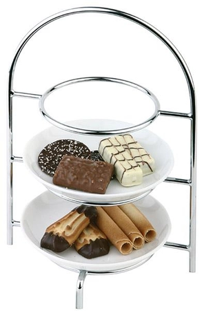 - Stand wykonany ze stali chromowanej na trzy okrągłe talerze o maksymalnej średnicy 170 mm