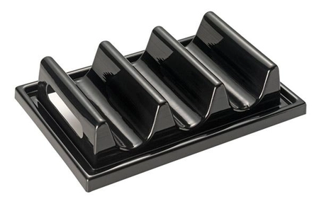- Stojak wykonany z czarnego polistyrenu z 3 przegrodami do ekspozycji kanapek