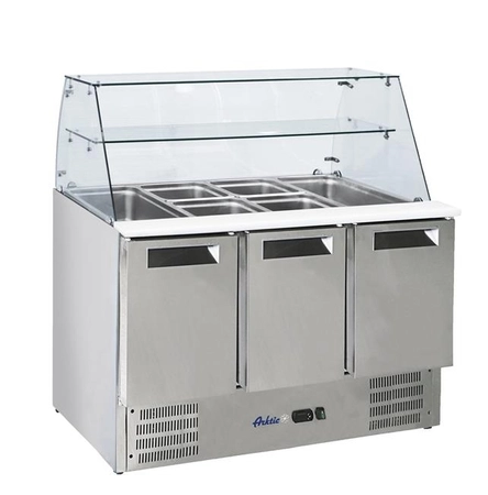 Stół chłodniczy sałatkowy 3-drzwiowy z nadstawą szklaną, 1365x695x1270 mm | ARKTIC, 236192