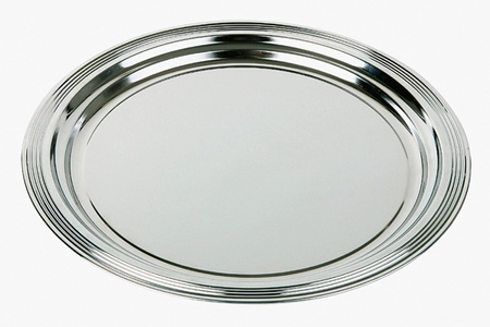 - Taca z wywiniętym, dekoracyjnym rantem wykonana ze stali chromowanej, nieodpornej na działanie kwasów, olejów, sosów itp