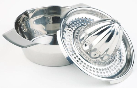 - Dwuczęściowy wyciskacz do cytrusów, wykonany ze stali nierdzewnej polerowanej
